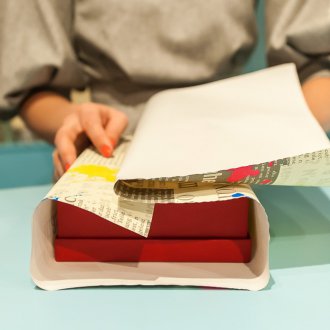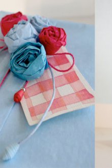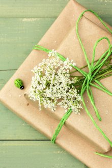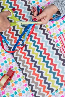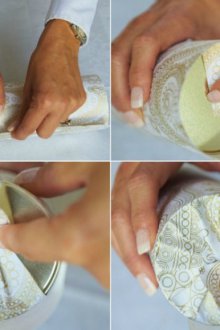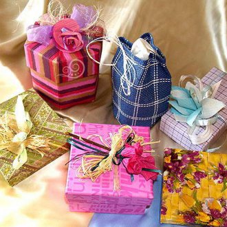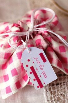 Тя ще бъде особено подходяща за опаковане на подарък за памучен принт (първата годишнина от брака) или за празник в чест на новородено. Тъканта трябва да се използва точно като хартия, може да се фиксира с лента или лепило.