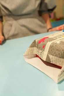- В долната част на бутилката трябва леко да огънете краищата на хартията и да я фиксирате с лента.