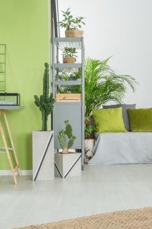 Закрити дървета от различни видове (кафе, лимон, долар, пари), както и малки цъфтящи саксийни култури за отглеждане на первази и рафтове (Saint-Pauli, spathiphyllum, недоразвити сортове китайски рози) са идеално подходящи за това.
