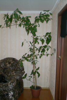 Дори в стайни условия това голямо тревисто растение, много подобно на дърво, достига височина 2 метра.