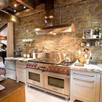 Като начало това все още е камък, така че тази инсталация несъмнено придава на всяка стая някак „див“, девствен, естествен и близък до естествен вид. Обмислете този фактор. Зидарията е допустима само в тези помещения, където не се използват неонови, неестествени цветове и текстури. Например, няма вероятност да се комбинират пластмасови, хромирани метални и каменни облицовки. Но ако украсите стаята с комбинация от камък и дърво, украсете с комбинация от камък и естествени нюанси на мебели - тогава да.