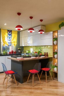 Обмисляйки дизайна на кухнята и избирайки лампи, е необходимо помещението да се раздели на няколко зони: зона за отдих, работна зона и място за съхранение. Зоната за готвене трябва да бъде по-ярко осветена.