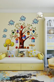 Ако имате просторна детска стая, но не и едно дете, купете разтегателен диван с акордеонна система. Така и двете деца ще имат добри легла, като се сгънат, в които ще има място за игри. За деца на различна възраст можете да изберете различни модели. Например, за най-голямата дъщеря вземете диван с клик, а за най-малката - вземете разтегателен диван или стол със страни.